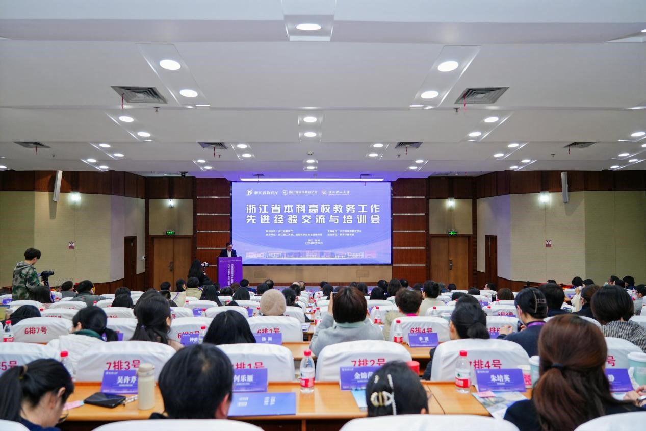 1月20日下午,浙江省本科高校教务工作先进经验交流与培训会在浙江理工大学顺利举行。来自全省47所普通本科高校的教务处负责人、教师教学发展中心负责人以及教务管理人员等140余人参加会议。会议旨在加强交流培训、互学互鉴、表彰典型、凝心聚力,全面加强全省本科高校教学管理共同体建设,进一步推进教学治理体系和治理能力现代化,共同推动我省本科教育教学高质量发展。本次会议由浙江省教育厅指导,浙江省高等教育学会主办,浙江省高等教育学会教学管理分会和浙江理工大学共同承办。